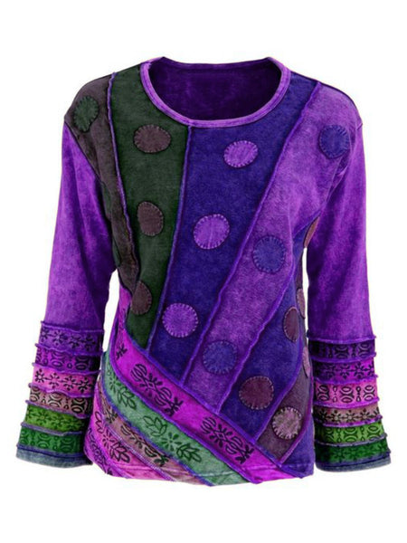 Casual Long Sleeve Round Neck Plus Size Tops